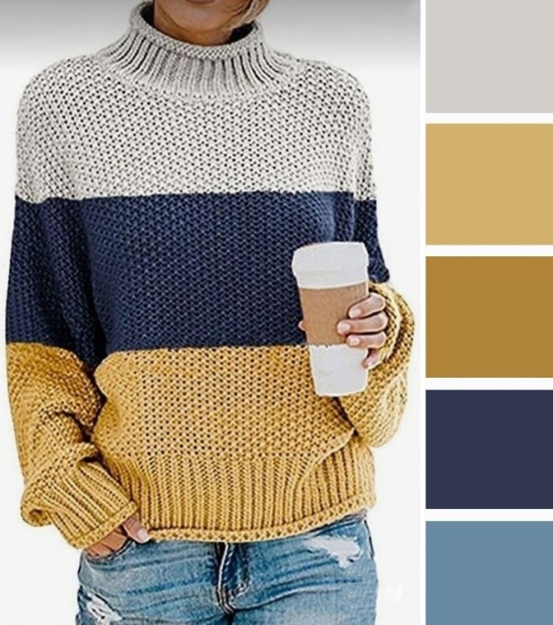 Горчичные и серо-синие цвета создают спокойную, но в то же время яркую палитру