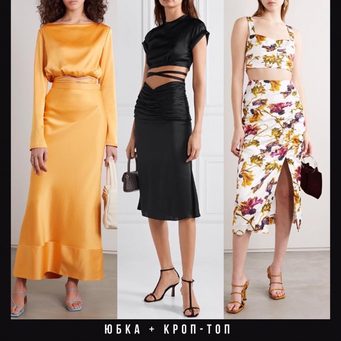 Актуальные атласные юбки и сочетания с ними