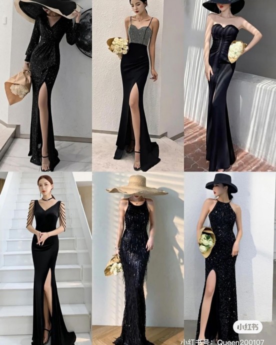 Подборка чёрных платьев в пол