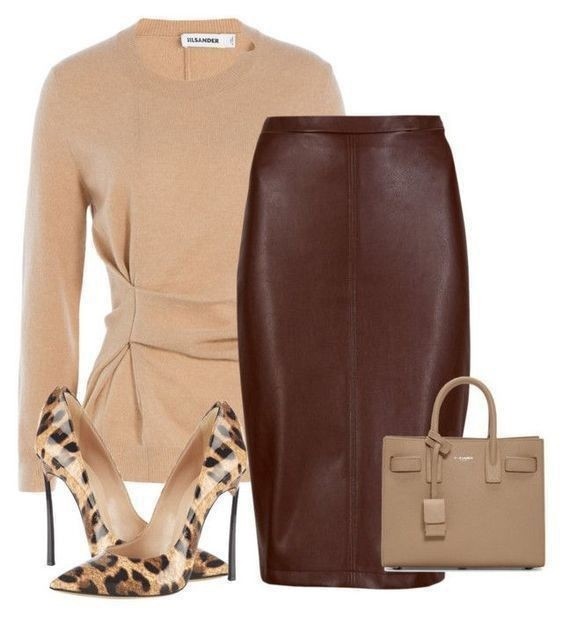 Look! Кожаные юбки длины миди в образах!
