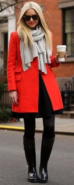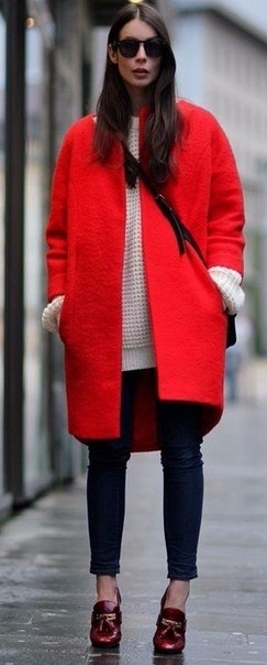 Яркие красные пальто и образы с ними.