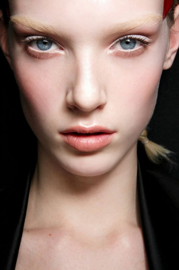 Самый очевидный способ — замена черной подводки на белую — это, конечно, протест и эпатаж. В реальной жизни далеко не всем подойдет такой способ. Особенно в ультрамодном варианте мейка без туши. Но есть у белой подводки еще одна роль: она прекрасно оттеняет темные элементы. Если вы хотите подчеркнуть технику, которую использовали в окрашивании ресниц, сделать белый "фон" будет весьма уместно.