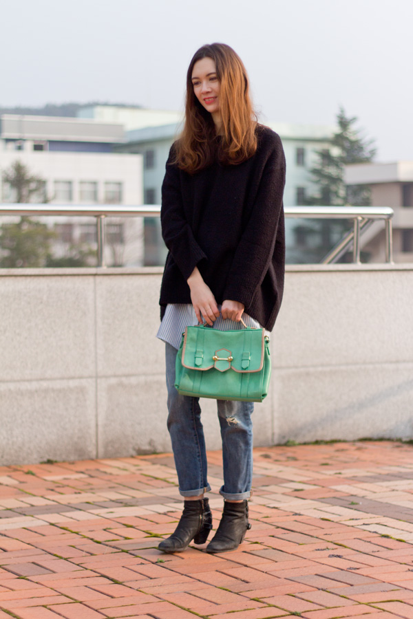 Оригинальное решение: платье-свитер с джинсами